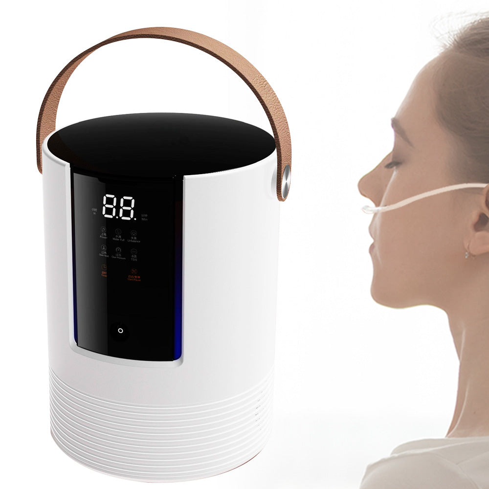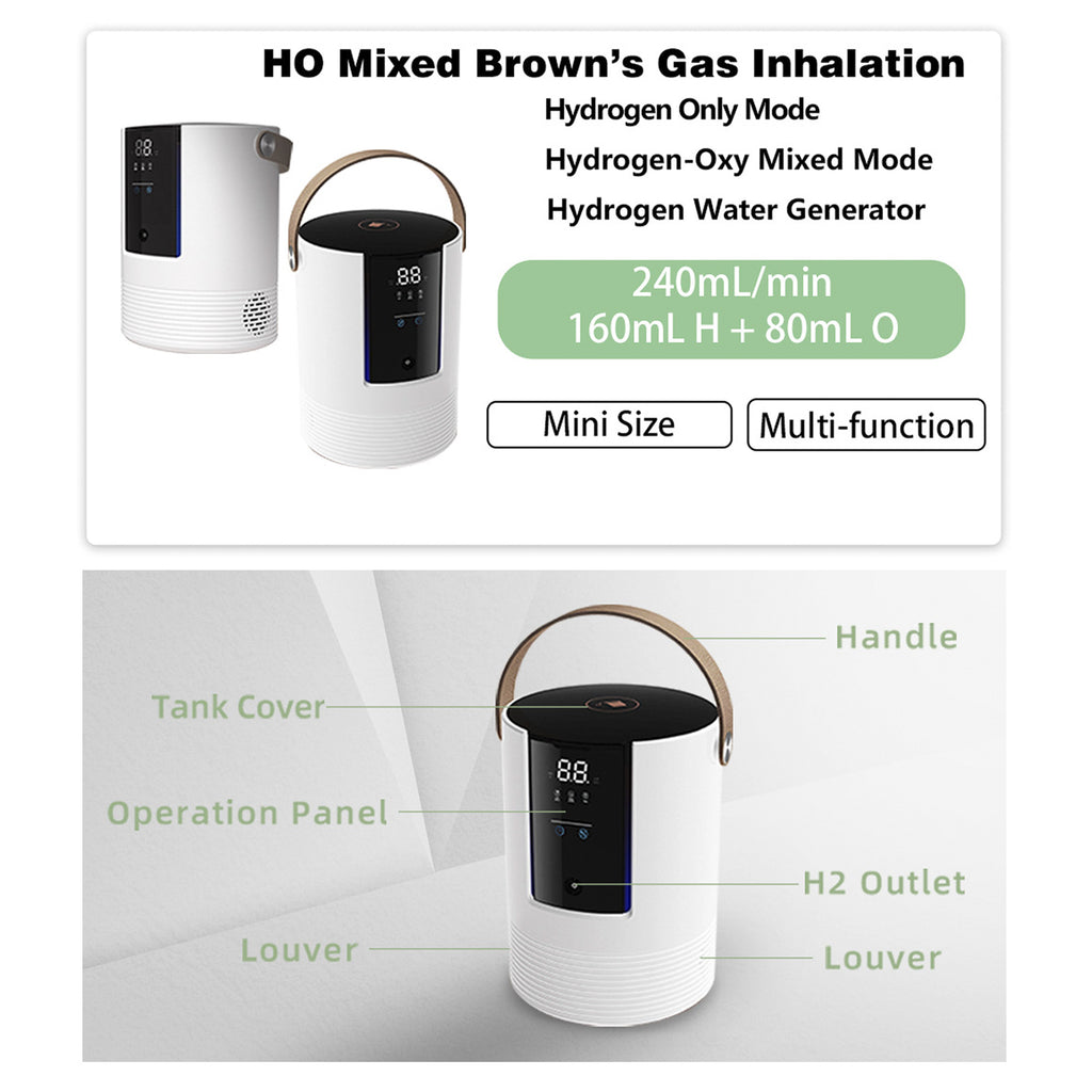 - Compact size suitable for desktop use. The handle makes it easy for carrying, allows you to enjoy the benefits of hydrogen anytime, anywhere.