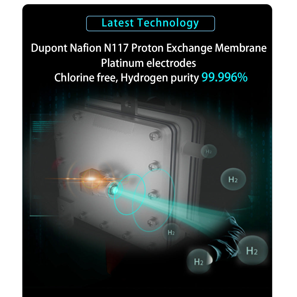 - 240mL/min total flow of 160mL/min hydrogen and 80mL oxygen. High purity 99.996% hydrogen molecular, chlorine-free and ozone-free, tested by third-party labs.